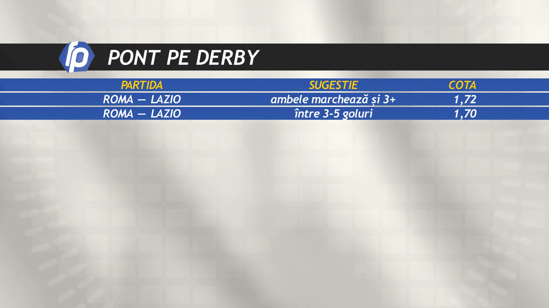 In acest weekend se va juca si Derby della Capitale, dintre Roma si Lazio, iar Doru Craciun a analizat acest meci si v-a oferit doua cote pentru ca voi sa va umpleti buzunarele.