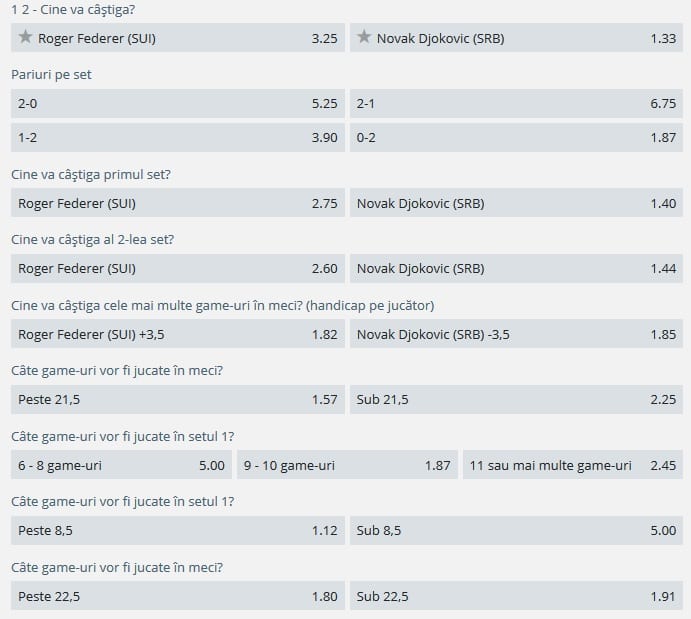Cotele partidei dintre Roger Federer si Novak Djokovic