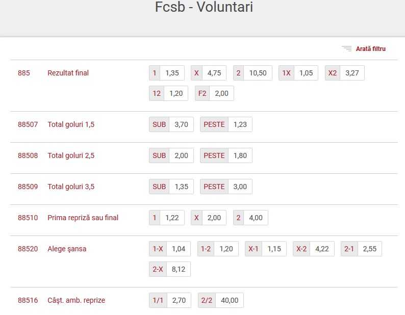 Cotele partidei dintre FCSB si Voluntari