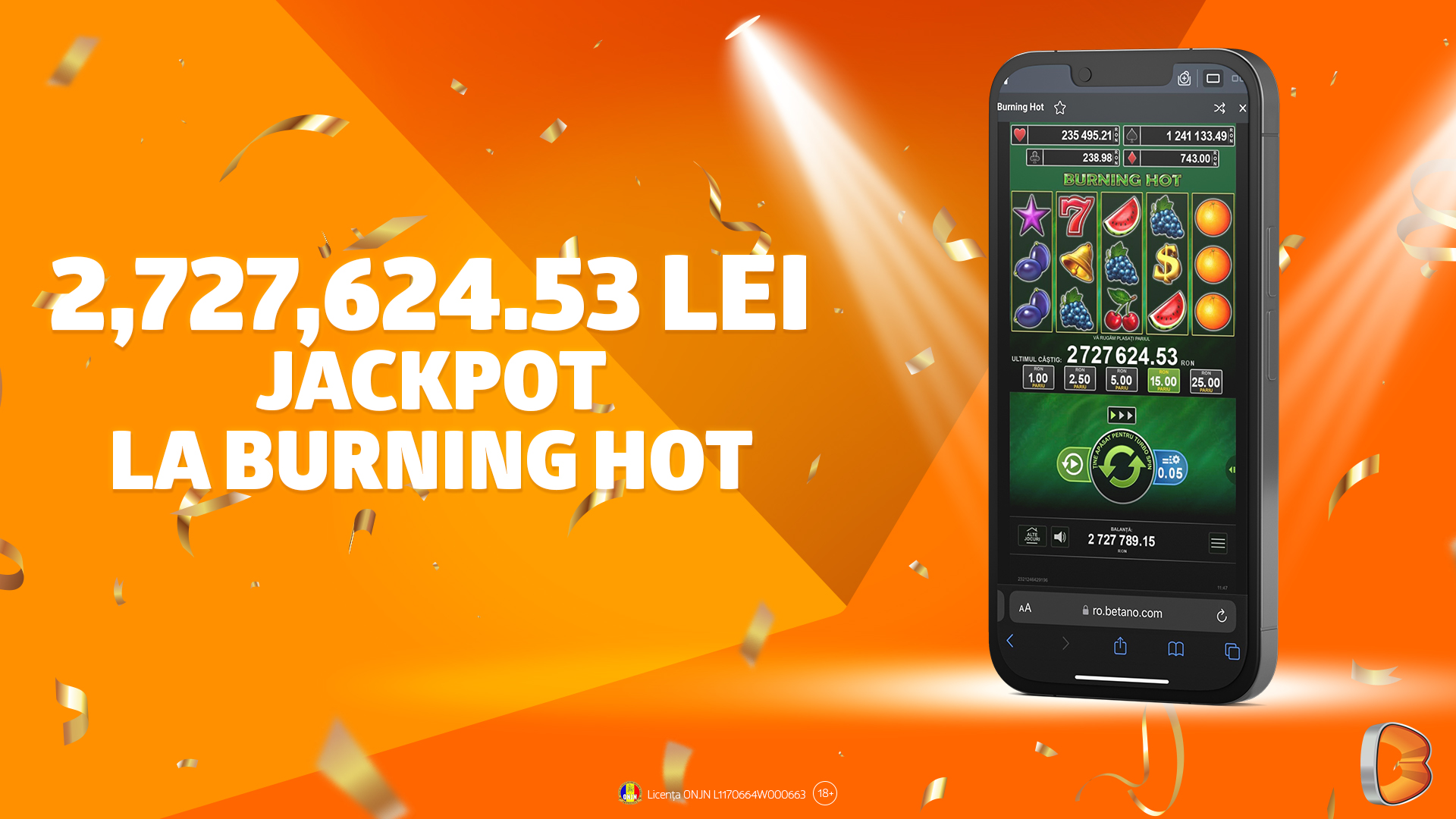 În ultimele patru  luni (mai, iunie și august 2023), jackpoturile din Cazinoul Betano au oferit premii de peste 7 milioane de lei. Acestora li se adaugă cel din ianuarie 2023, un câștig record la jocul 20 Dazzling Hot, în valoare de peste 5,5 milioane de lei, dar și cel din aprilie de peste 2,6 milioane de lei.