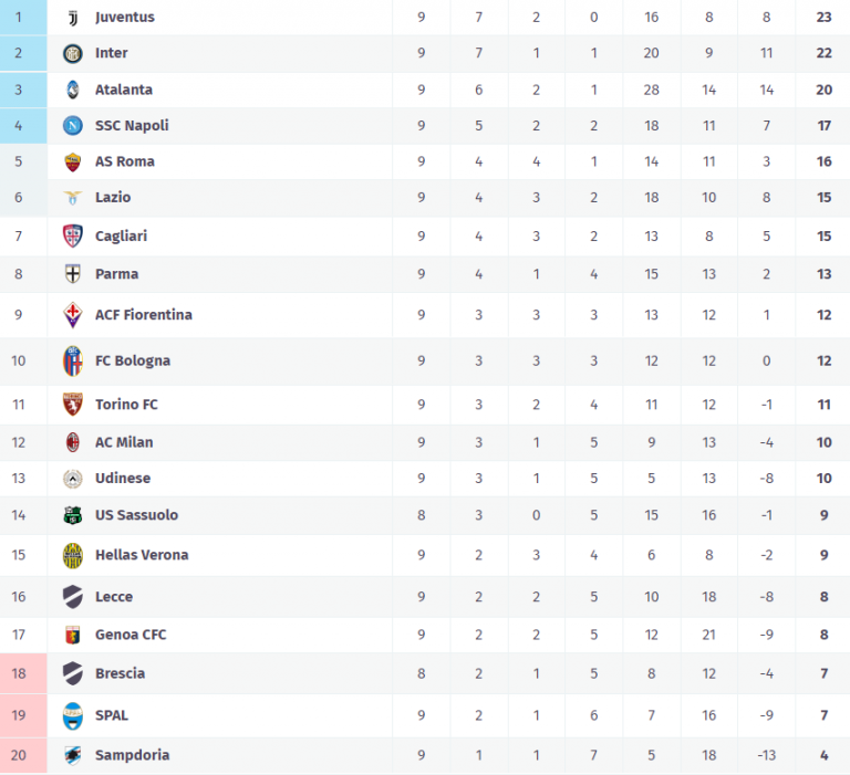 În aceste condiții, duelul dintre Napoli și Atalanta devine automat derby-ul etapei cu numărul 10 din Italia. Juventus va juca în această rundă cu Geona, formația internaționalului Andrei Radu în timp ce Inter se va duela în deplasare cu Brescia.