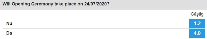 La pariuri cota pentru ca ceremonia de dechidere a JO să aibă loc pe 24 iulie 2020 avea cota 4.00!