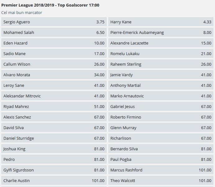 Cotele golgeterului Premier League in sezonul 2018-2019