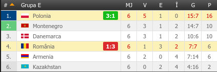 Muntenegru a castigat cu 4-1 partida cu Armenia, in timp ce Danemarca s-a impus, scor 3-1, in Kazahstan.