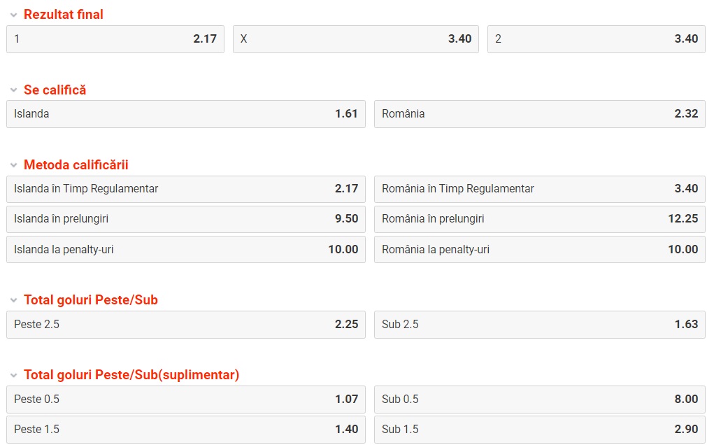 Cotele partidei Islanda – Romania