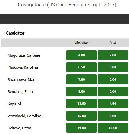 Cotele pentru castigarea US Open