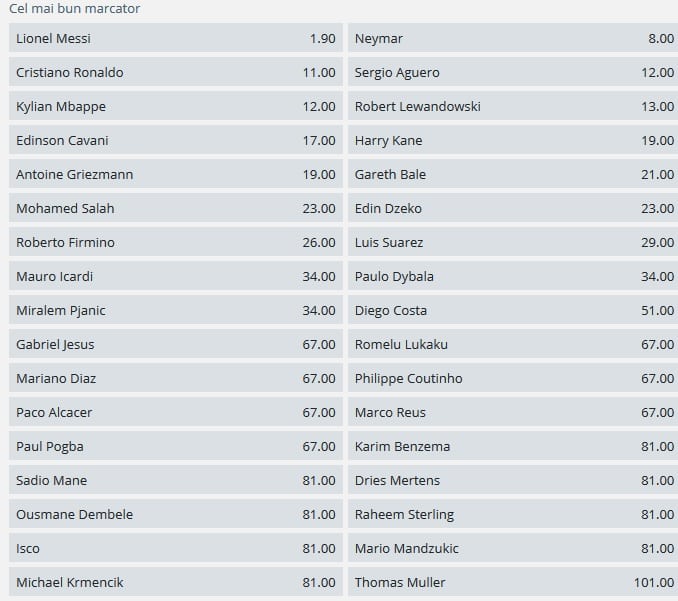 Cotele golgeterului Ligii Campionilor in sezonul 2018-2019