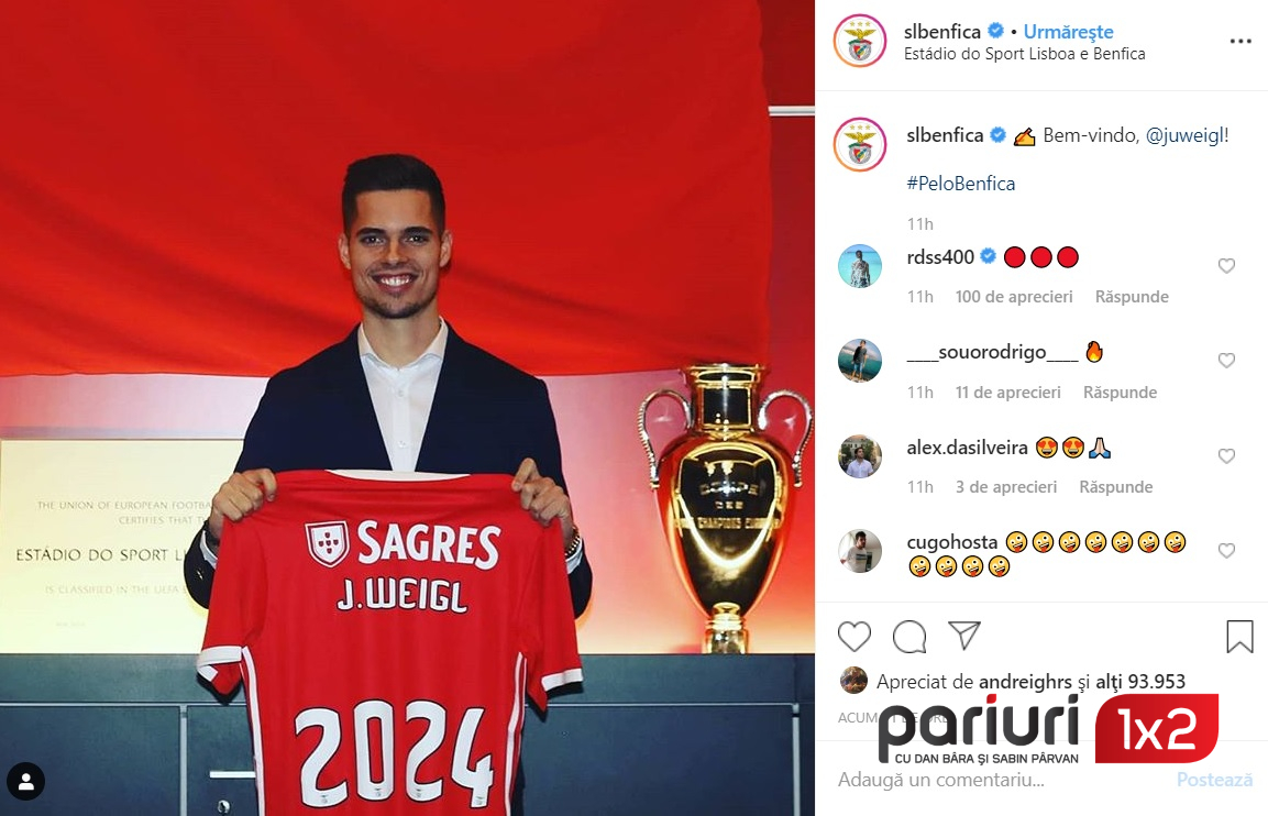 Benfica Lisabona a reusit un transfer important joi seara. Lusitanii l-au cumparat pe Julian Weigl, mijlocasul german de 24 ani, de la Borussia Dortmund. Mutarea a fost oficializata datorita unei sume de transfer in valoare de 20 milioane euro, iar Weigl a parafat un contract valabil pe patru sezoane si jumatate. Mijlocasul venise la Dortmund de la TSV 1860 Munchen in 2015 si initial si-a stabilit un loc in primul 11 al „galben-negrilor”, pe parcursul primilor 3 ani. In acel interval, Weigl a atras atentia unor grupari ca Barcelona, Manchester City sau Paris Saint-Germain, datorita abilitatii sale incredibile de a pasa. Declinul a inceput in stagiunea trecuta si chiar daca a fost titular de 12 ori in actualul sezon, Weigl a cerut conducerii sa fie lasat sa plece. Internationalul german va petrece urmatorii patru ani pe „Estadio da Luz” si are stipulat in contract o clauza de reziliere in valoare de 100 milioane euro.