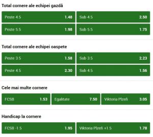 De remarcat este faptul ca Unibet este foarte generoasa cu noi pariorii si ne ofera multe variante de pariere, aici fiind singurul loc unde gaseste anumite tipuri de pariuri. In total sunt 211 de variante si spre exemplu poti miza pe numarul de cornere obtinute de gruparea condusa de Dica, iar cota 1.48 la cel putin 5 lovituri de colt este una foarte buna.