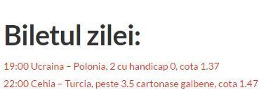 Pronosticuri castigatoare au venit cu predilectie din fotbal si tenis. Am „lovit” serios in Croatia – Spania, de unde am scos X-ul consemnat la pauza, intr-cota de 1.95, dar si varianta 2-3 goluri in meci, la cota 2.00. De asemenea, la fel ca si in emisiunea „Un Pont pe Zi”, difuzata seara de seara de la ora 00:00, Live pe B1 TV, am anticipat minimum 5 cartonase in Turcia – Cehia, la o cota de 2.00. Din Ucraina – Polonia am extras, in cota 1.72, varianta unei deschideri de scor realizate de Lewandowski & co (swcor final 0-1), iar la semifinala de Copa America dintre SUA – Argentina am pariat simplu: peste 2 golrui in meci. Au fost 4, toate marcate de argentinieni.