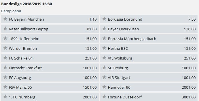 Cotele castigatorului Bundesliga in sezonul 2018-2019