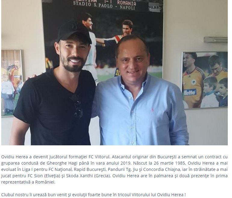 Campioana Viitorul a facut primul transfer din aceasta vara! Echipa lui Hagi a semnat cu Ovidiu Herea un contract valabil pentru urmatoarele doua sezoane. Atacantul de 32 de ani a evoluat in sezonul precedent pentru Pandurii, iar in retur a jucat in tricoul Concordiei Chiajna, echipa alaturi de care s-a salva de la retrogradare. „Clubul nostru ii ureaza bun venit si evoluții foarte bune in tricoul Viitorului lui Ovidiu Herea!”, au postat pe site-ul oficial, cei de la Viitorul.