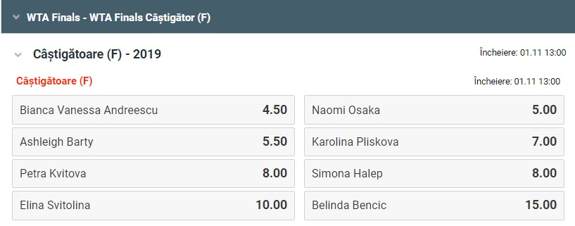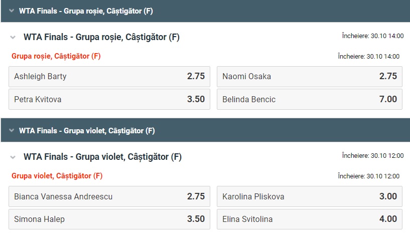 Cat despre Grupa Rosie, va fi foarte interesanta rivalitatea dintre Ashleigh Barty si Naomi Osaka, ce au tot facut rocada pe „tronul” WTA. Belinda Bencic joaca tenisul carierei in 2019, reusind calificarea in premiera la Turneul Campioanelor. Nu acelasi lucru il putem spune despre Petra Kvitova, castigatoarea a doua titluri la Wimbledon, dar si a editiei din 2011 a Turneului Campioanelor. Meciurile incep inca de duminica, iar disputa Halep – Andreescu va avea loc luni!