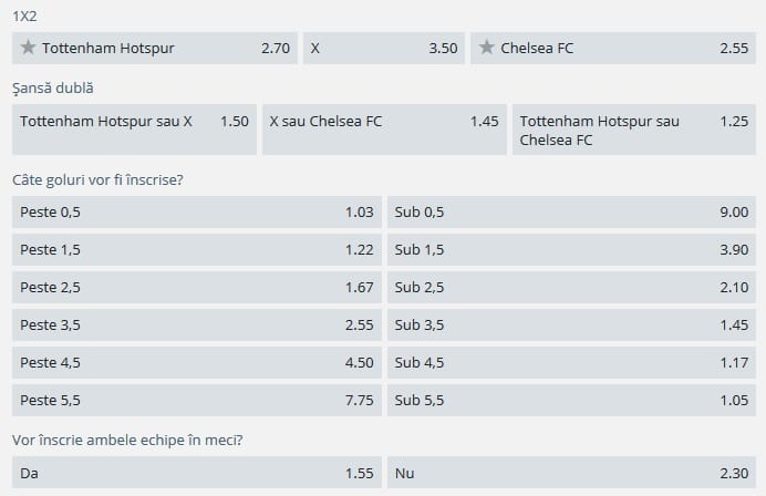 Cotele partidei dintre Tottenham si Chelsea
