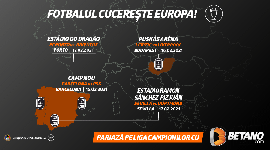 Primele dueluri din 2021 în Liga Campionilor și Liga Europa sunt marcate de disputarea unor meciuri pe alte stadioane de top de pe continent. Capul de afiș săptămânii este deținut de jocul ca o finală, de pe Camp Nou, dintre Barcelona și PSG.
