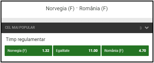 Chiar daca nu a avut un start solid, Norvegia ramane in continuare favorita principala la cucerirea medaliei de aur a Campionatului European, in timp ce tara gazda, Franta, are doar sansa a 3-a. Nationala lui Ambros Martin primeste sansa a 5-a, avand o cota egala cu Danemarca, 14.00 la Unibet.