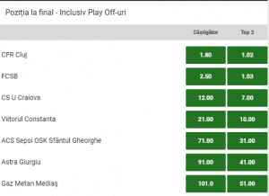 Principalele Cote Unibet pentru castigarea titlului in Liga 1 sezonul 2018/2019: