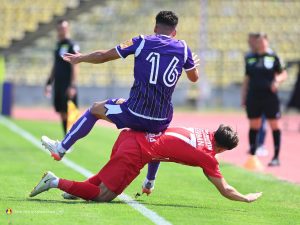 Vianna Fabio Andre Freitas si Andrei Dragos Serban in meciul de fotbal dintre FC Arges si Chindia Targoviste, contand pe