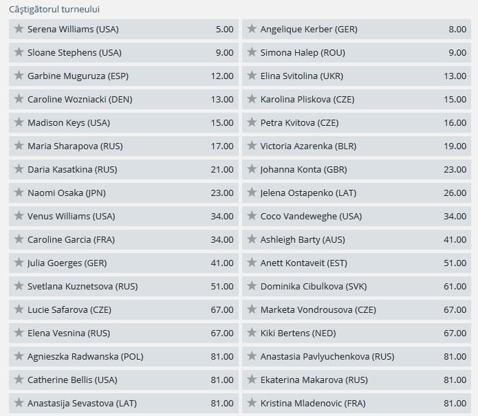 Cotele la castigarea US Open 2018