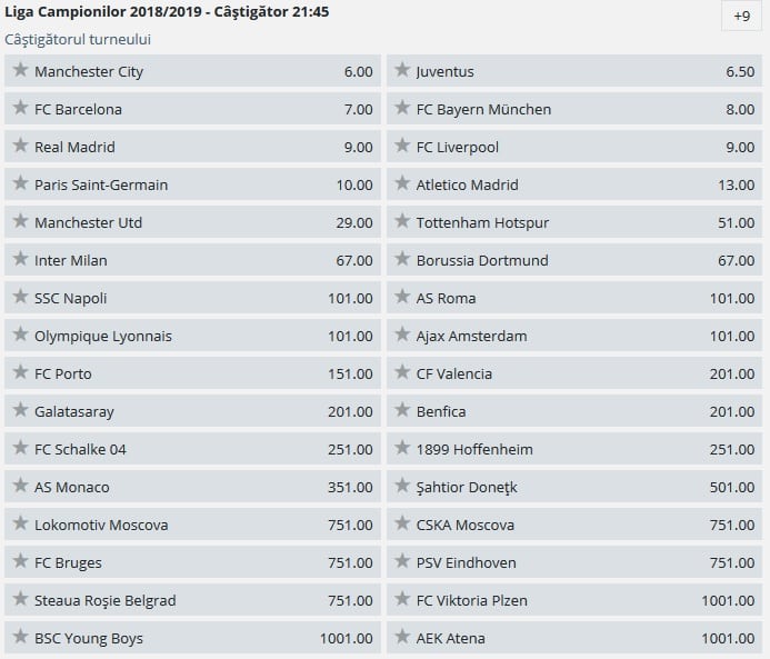 Cotele castigatorului Ligii Campionilor in sezonul 2018-2019