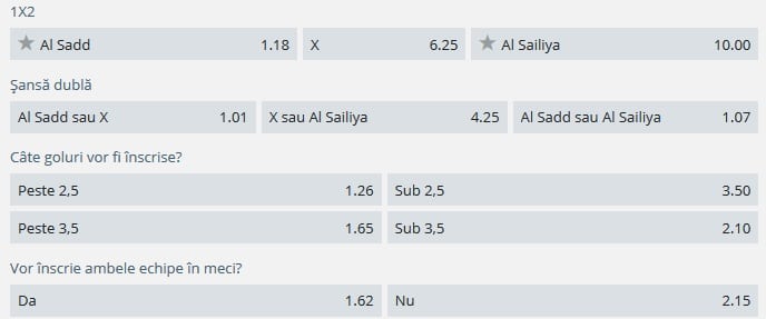 Cotele partidei dintre Al Sadd si Al Sailiya