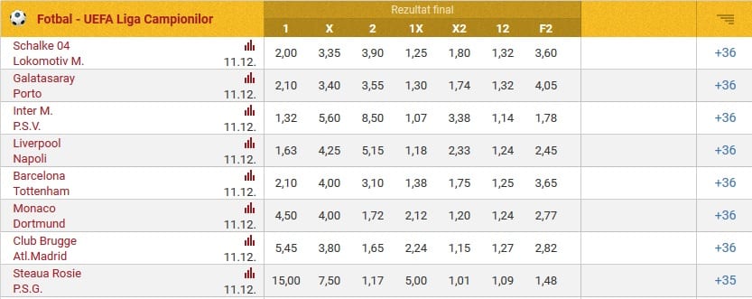 Cotele partidelor din Liga Campionilor