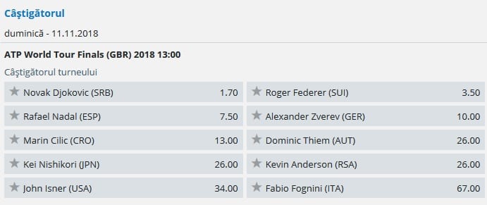 In ultimele 2 zile s-au stabilit si ultimii 3 tenismeni calificati la Londra. Marin Cilic si Dominic Thiem au obtinut locurile 6 si 7 dupa partidele din sferturile de finala de la Paris, iar Kei Nishikori a „agatat” inextremis ultima pozitie, dupa anuntul retragerii din concurs a lui Juan Martin Del Potro. Finalistii din sezonul trecut, Grigor Dimitrov si David Goffin, nu au mai reusit in 2018 sa fie la cel mai inalt nivel, ratand prezenta la Londra.