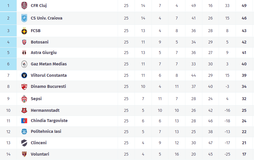 După ce CFR Cluj, Universitatea Craova, FCSB și FC Botoșani și-au asigurat matematic prezența la „masa bogaților”, lupta pentru ultimele două locuri de „top 6” se va da între Astra Giurgiu, Gaz Metan Mediaș și Viitorul Constanța.
