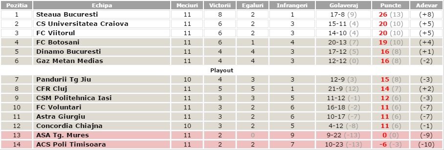 Steaua Bucuresti pornea ca favorita edita 2016/2017 a Ligii 1, avand in urma cu 11 runde o cota de 1,70 pentru cucerirea celui de-al 27-lea titlu din istoria sa. Parcursul de pana acum, coroborat cu fluctuatiile de forma ale adversarelor (in special a giurgiuvenilor) au consolidat opinia caselor de pariuri, formatia din Bucuresti avand in prezent o cota de doar 1,15 la Unibet pentru a se impune in actuala stagiune.