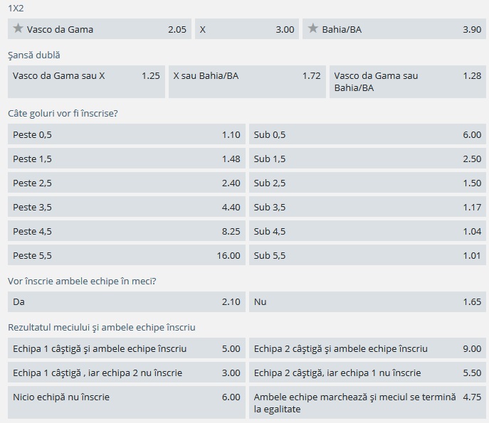 Cotele partidei dintre Vasco da Gama si Bahia/BA