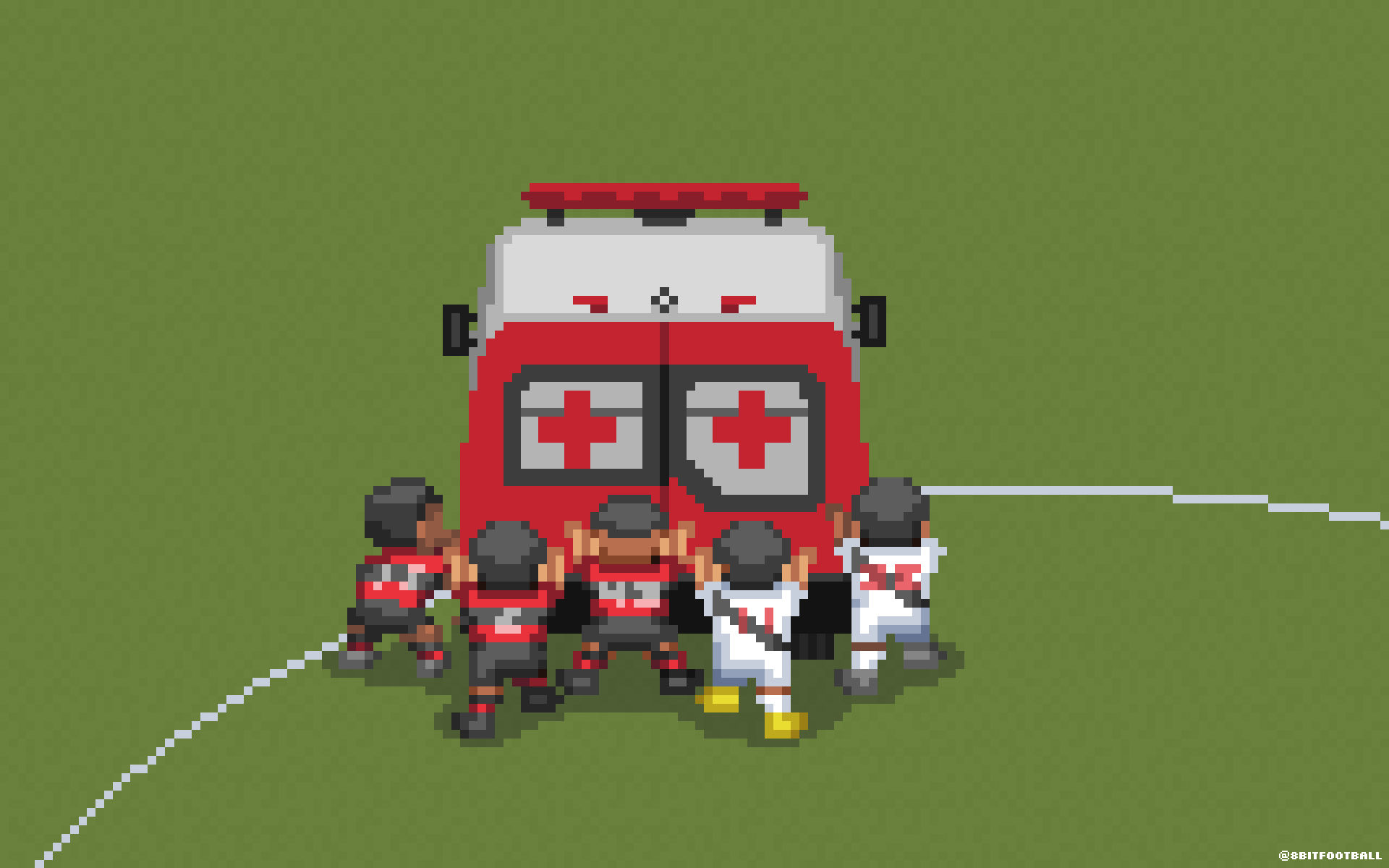 Fotbalistii formatiilor Vasco de Gama si Flamengo au lasat rivalitatea la o parte si au pus umarul la scoaterea ambulantei in afara terenului de joc.