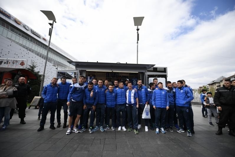 Fotbalistii Craiovei s-au intalnit cu fanii inaintea meciului cu FCSB si le-au cerut sprijinul maine seara. Baluta, Ivan si Zlatinski, alaturi de ceilalti fotbalisti, au fost prezenti la magazinul mobil al clubului, s-au fotografiat alaturi de suporteri si le-au oferit acestora autografe.