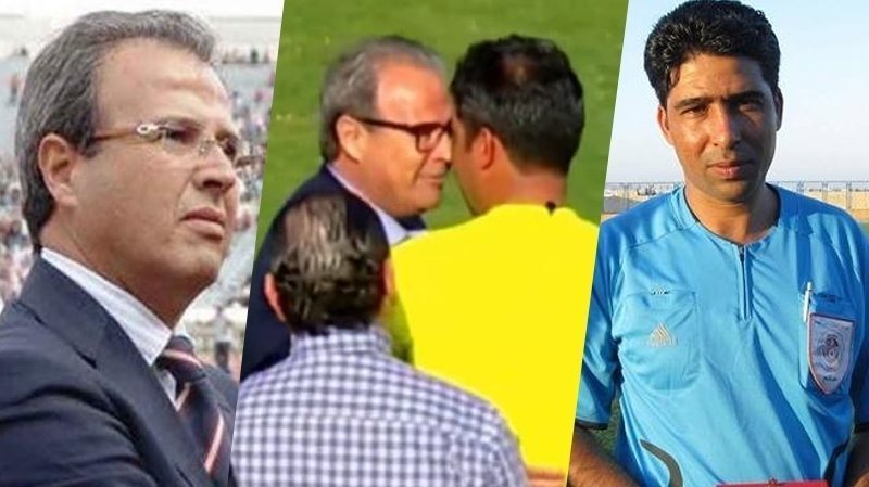 Scandal monstru in Tunisia! Presedintele echipei CS Sfaxien a avut un gest iesit din comun, la finalul meciului cu Etoile du Sahel, castigat de echipa sa cu 3-2! Oficialul, extrem de bucuros, s-a dus direct la arbitrul partidei pe care l-a pupat, l-a muscat de ureche si l-a mangaiat pe spate. Oaspetii, cei de la Etoile, au lansat acuze de blat dupa acest moment. Nici Federatia Tunisiana nu a ramas cu mainile in san! Acestia l-au suspendat pe viata din fotbal pe Moncef Khemakhem, presedintele celor de la Sfaxien si i-au dat o amenda in valoare de 12.000 de euro pentru „comportament nesportiv si indecent”.