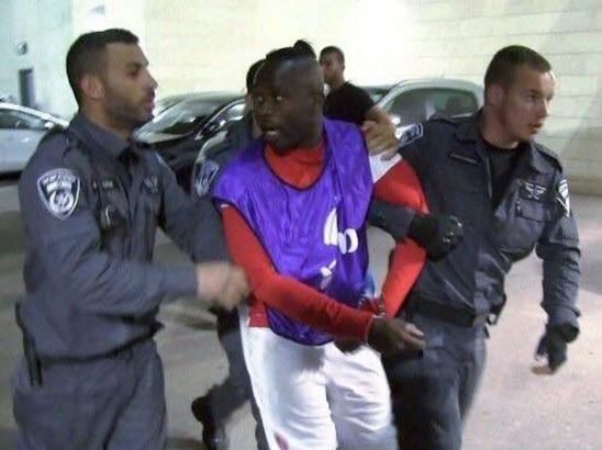 Hapoel Tel Aviv's Toto Tamuz handcuffed after claims he assaulted police after a 0-0 draw v Ashkelon pic.twitter.com/J8grBrkDeK