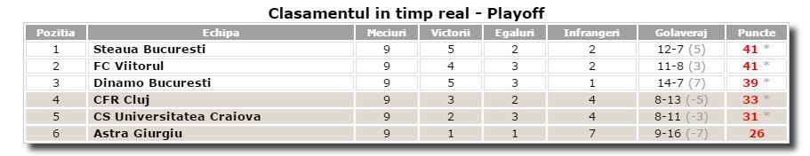 Titlul de campioana se va decide in ultima etapa cand FCSB va intalni CS U Craiova pe Arena Nationala, in Stefan cel Mare, Dinamo va primi vizita celor de la Astra, iar Viitorul se va duela pe propriul teren cu CFR Cluj. In cazul in care toate cele trei vor invinge in ultima etapa, echipa lui Hagi va iesi campioana, gratie rezultatelor mai bune din meciurile directe cu FCSB.