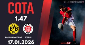 Același pariu – 1X și peste 1.5 goluri – îl propun pe biletul de sâmbătă Faci Pariu #447 și pentru meciul Borussia Dortmund – St. Pauli. Pentru că dă piept cu penultima clasată, echipa cu doar 3 victorii în 16 runde, Dortmund are o șansă bună de a-și betona locul 2, într-o etapă în care principalele contracandidate au meciuri grele. Leipzig, de exemplu, primește vizita lui Bayern, iar Leverkusen merge la Hoffenheim.